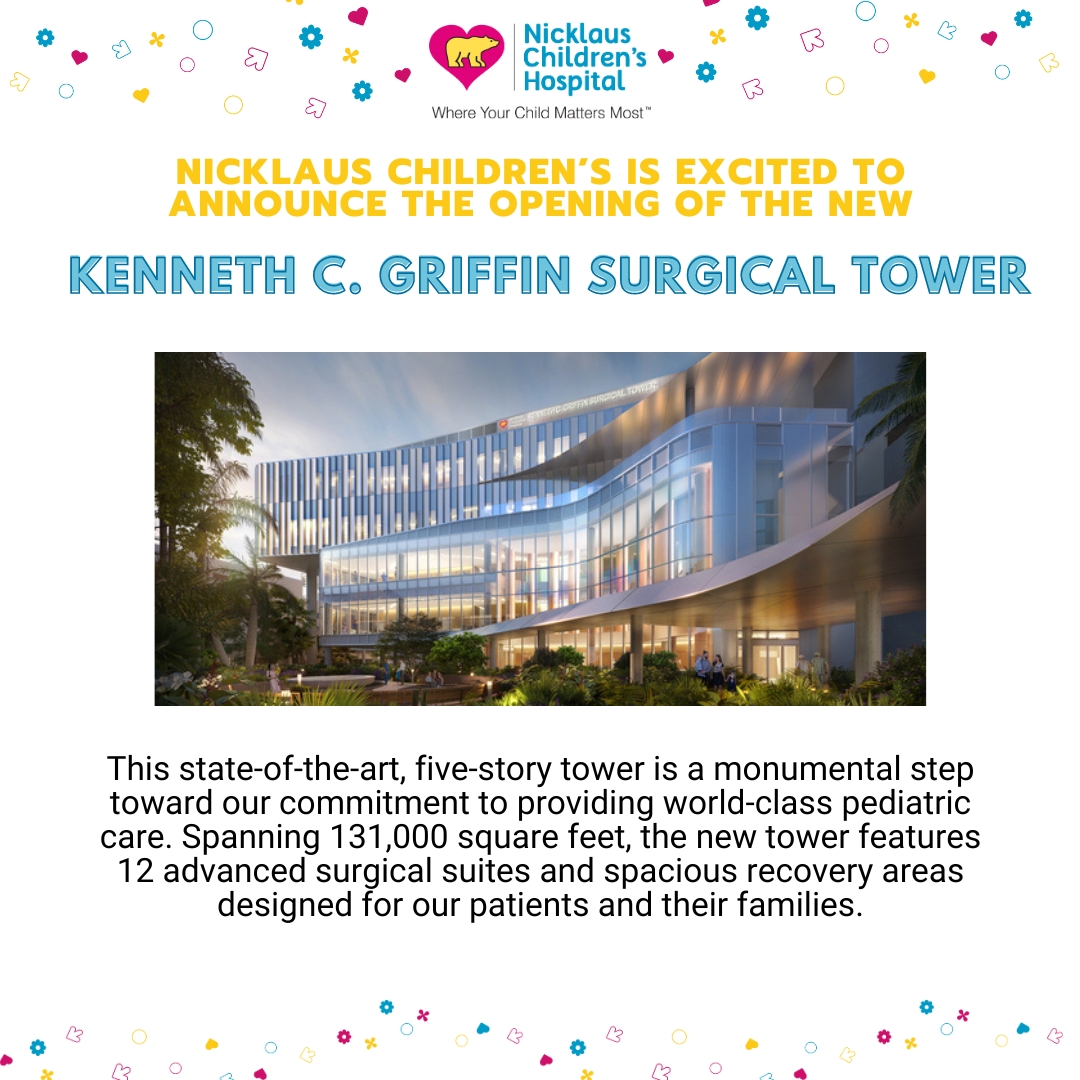 We are excited to announce the opening of the Kenneth C. Griffin Surgical Tower at Nicklaus Children's Hospital!