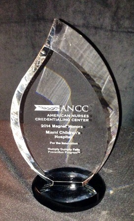 MIAMI- The American Nurses Credentialing Center (ANCC) awarded its annual Magnet® Honors Award to Miami Children’s Hospital (MCH) in recognition of the hospital’s Humpty Dumpty Falls Prevention Program™. The program was developed by MCH clinicians to identify patients at risk and prevent falls in the care environment. The Magnet Honors Award is presented to a Magnet hospital that embodies excellence in patient care by creating and managing a transformational program that makes a difference for patients and nurses alike. The award was presented at the