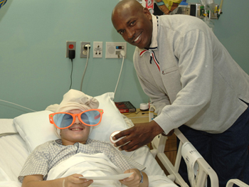 New York Yankee's star right fielder Ruben Sierra brings holiday cheer to Miami Children's Hospital patient Brian Farabee. Sierra generously donated his time to visit patients at the hospital on Tuesday, December 20.