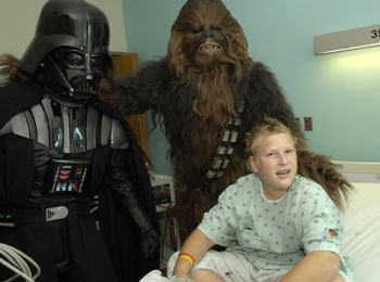 MIAMI, FL — Chewbacca, Han Solo’s faithful Wookiee co-pilot; Darth Vader, the feared Dark Lord of the Sith; and Wicket, the cuddly Ewok journeyed to Miami Children’s Hospital on August 22 to distribute gifts and visit the children.